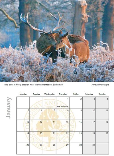 The calendar is produced by Friends of Bushy and Home Parks volunteers following a photographic competition asking for your photos of wildlife and nature in the parks. Thank you to everyone who submitted photos as part of this competition.
